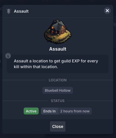 We’re also looking at adding equipment to assaults in the future. For example, guilds might be able to construct a Trebuchet using materials from their stockpile, giving them an edge in battle. This could mean small perks, like a slight boost to the percentage of EXP a guild earns per kill. However, we’re holding off on sharing too many details just yet, as this feature likely won’t make it into the upcoming update due to time constraints.